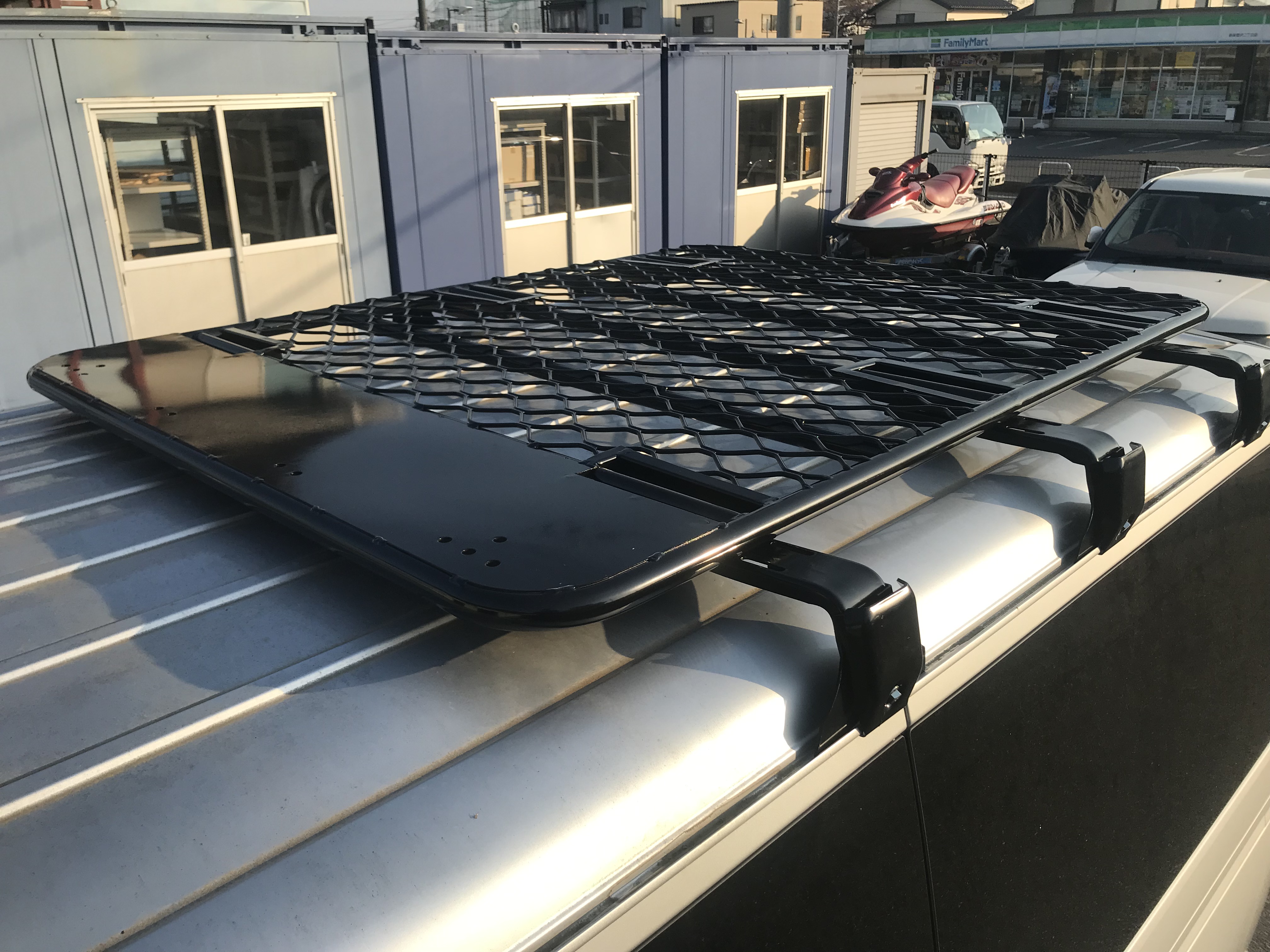 | 商品説明 | こちらの商品は加工なしで取付け可能です。 ラック本体寸法 縦160cm 横120cm 高さ4cm ラック固定ブラケット足部、高さ寸法(約12cm・高さ調整プラス約~3cm) ラック本体(横120cmに)とブラケット足部固定幅調整可能、約10cm 積載耐荷重:約200kg ラック本体アルミ製で錆に強い。超軽量 フラットラック ラック固定ブラケット足部はスチール製 ラック装着による風切り音の軽減させるプレート溶接仕様(前側部分) 取付に必要なブラケット、ボルト、ナット、ワッシャー等、付属しております。 |